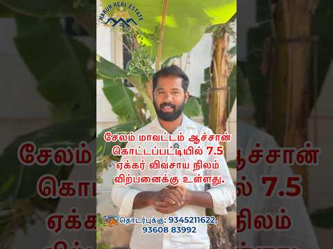 சேலம் மாவட்டம் ஆச்சான் கொட்டப்பட்டியில் 7.5 ஏக்கர் விவசாய நிலம் விற்பனைக்கு உள்ளது.#realestate
